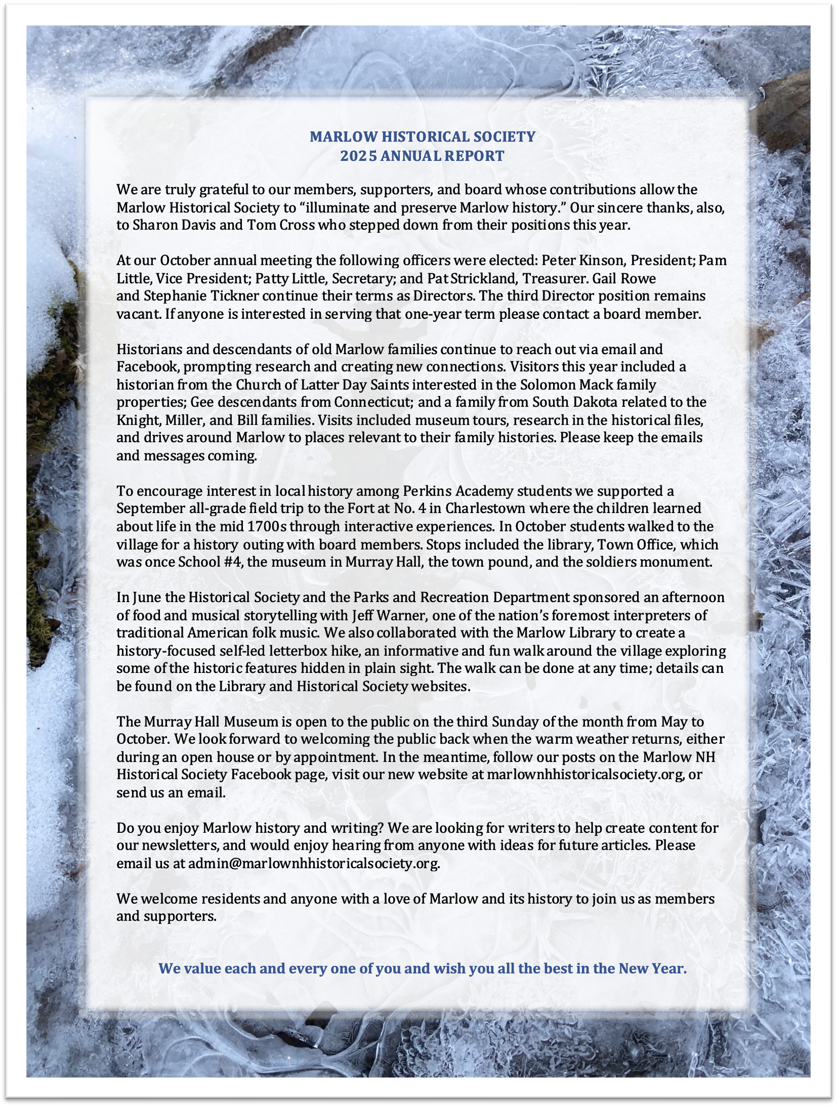 Over a decade of the Marlow Historical Society newsletters are available in our online archive with stories and memories from the 18th century to today.